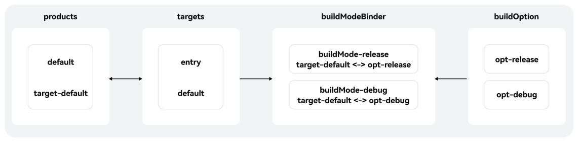 假设其中构建产物均为default,但编译行为不同:release模式下使能混淆,debug模式下使能debug调试。