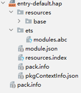 示例工程中包含一个模块entry,将entry模块交付到构建产物default中,模块定制两种不同的编译模式debug、release,将两种构建模式均绑定到构建产物default中。工程示例图如下(模块):