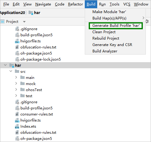 在hap的Index.ets文件中引用该har包并且使用MainPage方法。