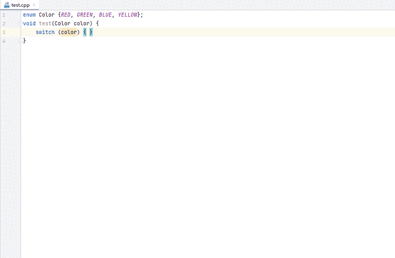 编辑器支持快速修复方式,对C++代码自动补齐switch条件表达式缺失的case条件,提升编码效率。
