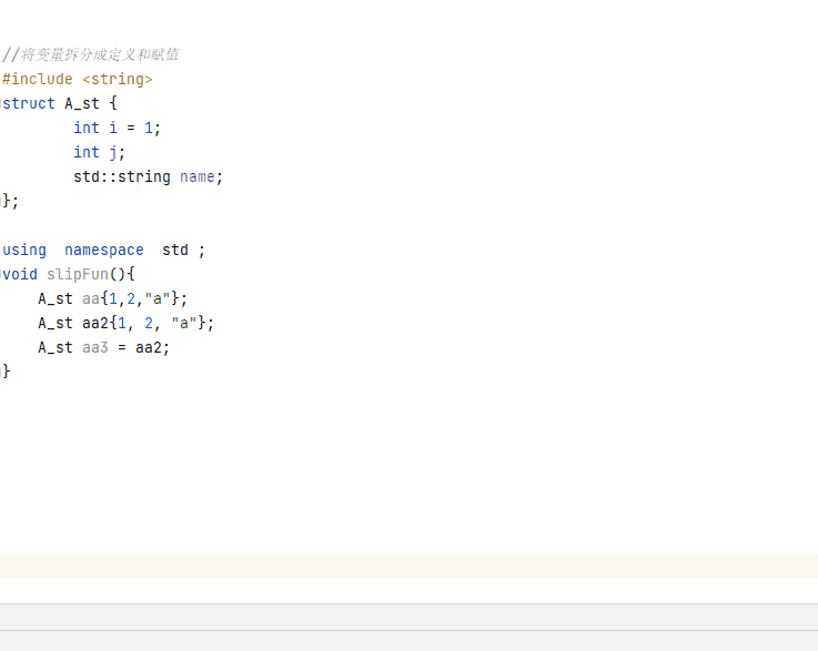 光标点击需要拆分的变量,左侧出现黄色灯泡后,点击灯泡图标选择Split into declaration and assignment,将变量的声明赋值语句拆分成声明语句和赋值语句。