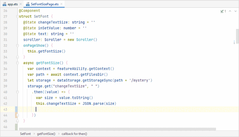 在HSP或HAR模块内的文件编辑界面,单击右键选择Generate...>Declarations,或者使用快捷键Alt+Insert(macOS为Command+N),在菜单中选择Declarations,按住快捷键Ctrl并选择需要声明的变量名、方法名、接口名、类名等,即可在模块的Index.ets文件中批量生成相应的声明信息。