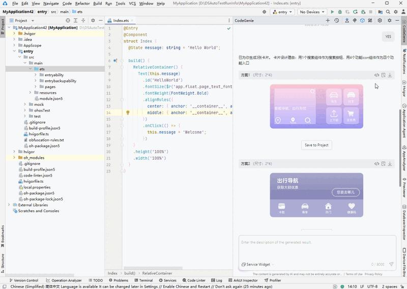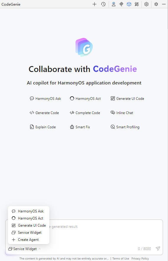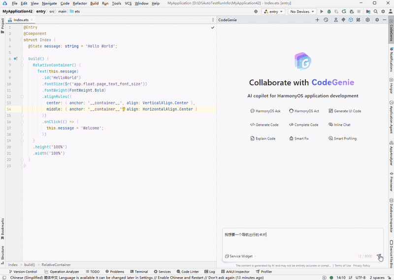 基于AI大模型理解开发者的卡片需求信息,通过对话式的交互智能生成HarmonyOS万能卡片工程。