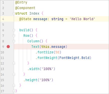 DevEco Studio ArkTS支持行断点、日志断点等多种不同类型的断点,这些断点可以触发不同的操作。