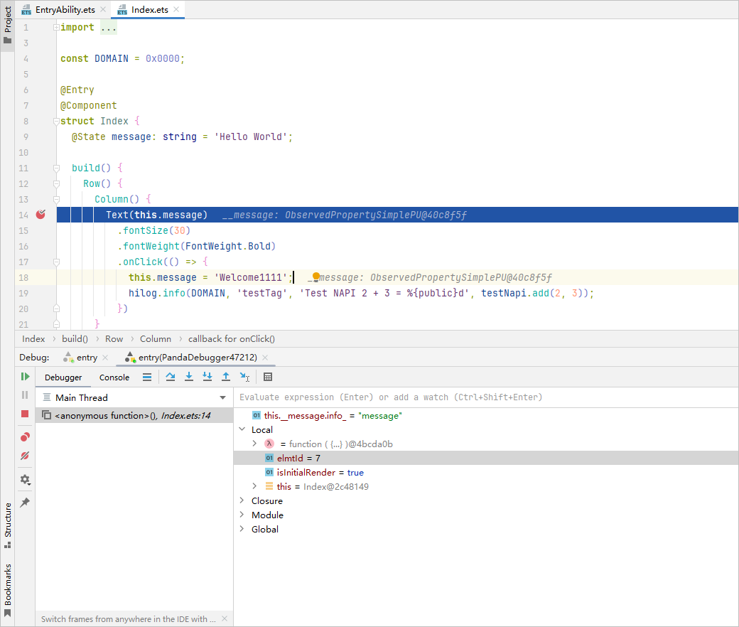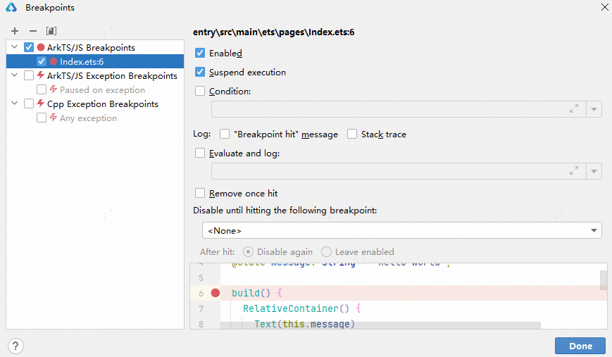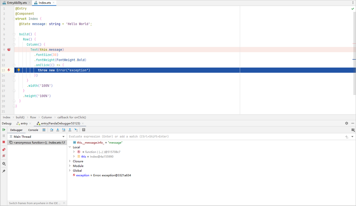 从DevEco Studio 6.0.0 Beta2版本开始,支持在ArkTS代码中设置函数断点。
