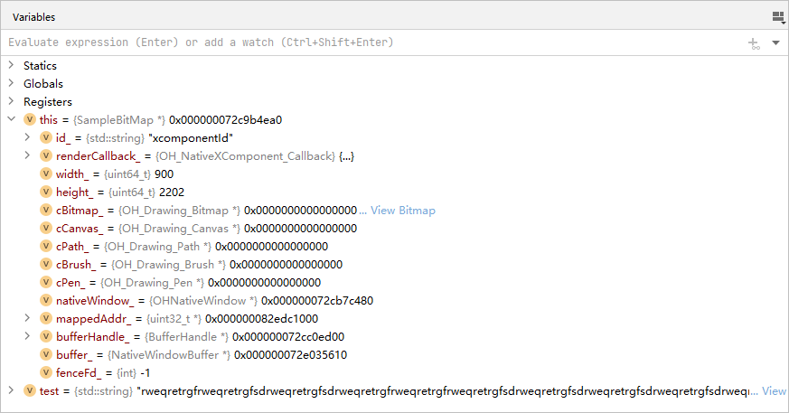 对于特定类型的变量,还支持查看bitmap预览、查看较长的字符串等功能。