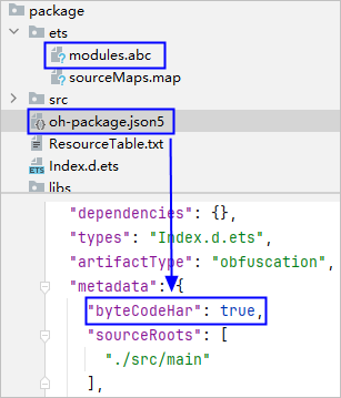 查看HAR包的oh-package.json5文件,存在byteCodeHar字段并且值为true。
