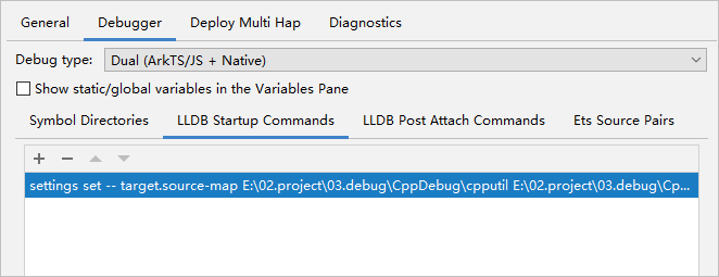 如果在HAR包工程中同时配置Symbol Directories和Ets Source Pairs,可同时attach调试ArkTS和C++断点。