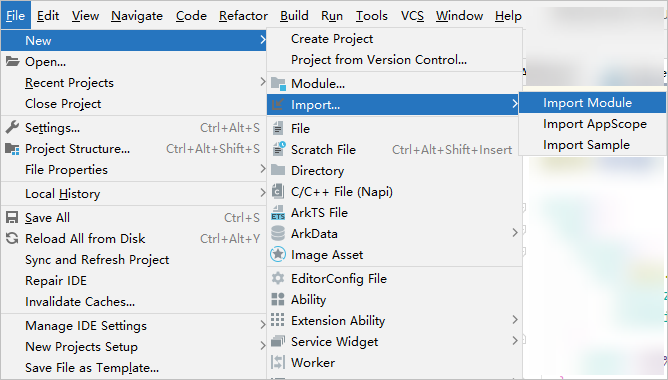 在主工程中导入字节码HAR对应的模块,确保模块的层级目录与HAR包工程的保持一致,例如HAR模块都在工程根目录下。