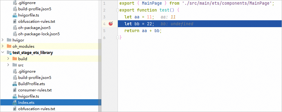 // demo主模块的oh-package.json5"dependencies": {"@ohos/test_stage_ets_library": "file:./lib/test_stage_ets_library.har",}如果在demo主模块的oh-package.json5中,配置对字节码HAR模块的依赖,如file:../test_stage_ets_library,调试时可能导致断点无效。