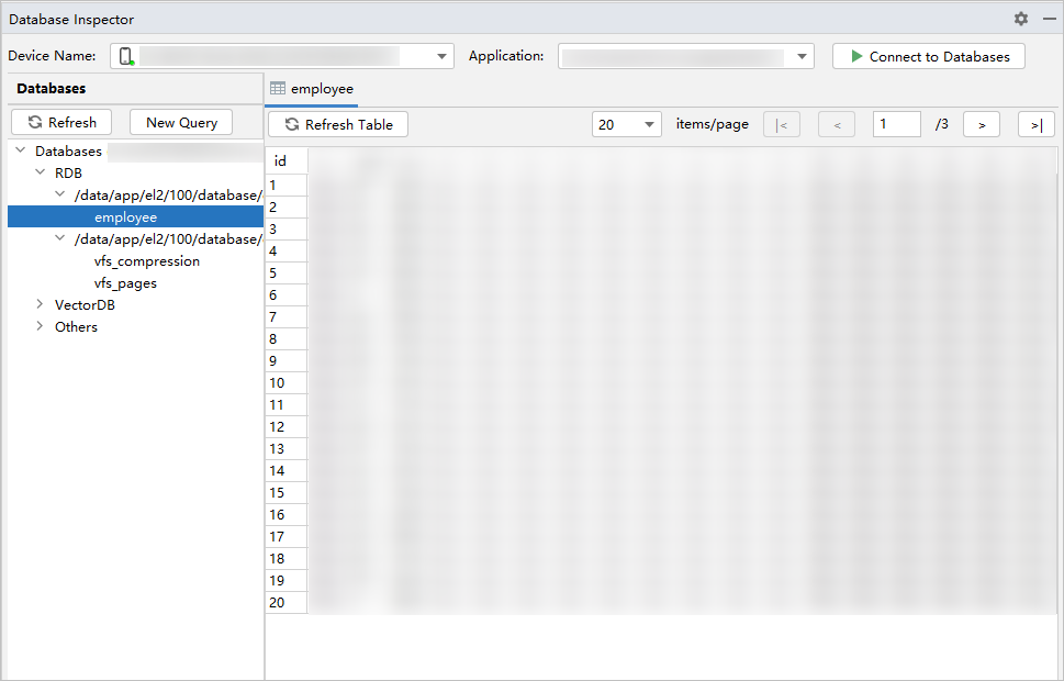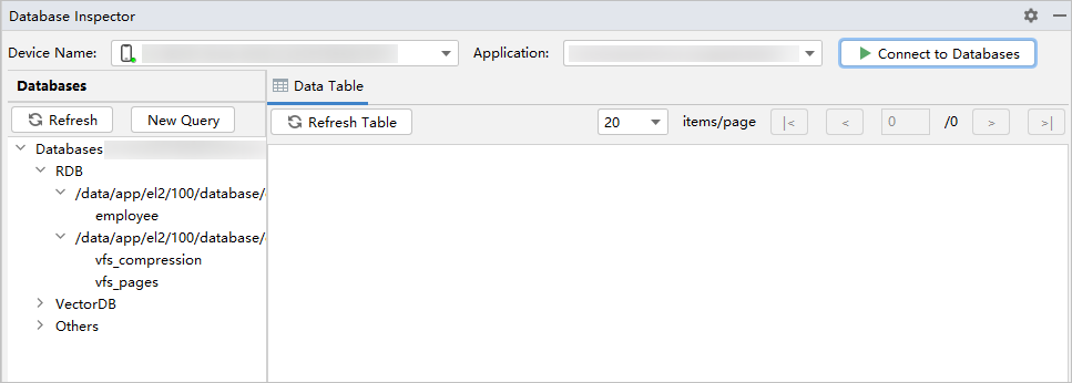选择包名,点击右侧的Connect to Databases按钮,即可查看数据库相关信息。(如果使用DevEco Studio 6.0.2 Beta1版本,按钮名称是Execute)。