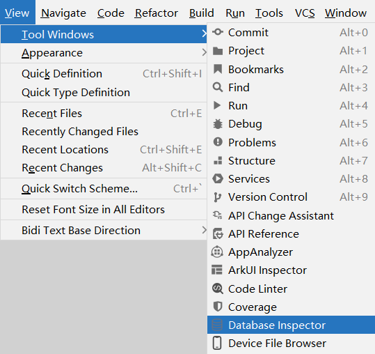 点击菜单栏View > Tool Windows > Database Inspector,打开Database Inspector。