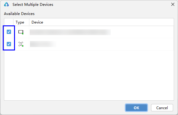 在设备选择框中,点击Select Multiple Devices,弹出多设备选择框。