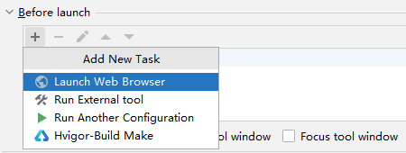 在Before launch窗格中,您可以点击添加应用启动前的任务。