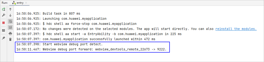 从DevEco Studio 4.1 Canary2版本开始,支持当代码无变化时,不进行推包安装。即根据模块有无变化来判断是否重新推送安装模块包,在运行调试时仅将有变化的模块及依赖它的模块重新推送安装至设备上。如entry依赖了HSP模块,当HSP模块有变化,运行调试时将同时推送安装HSP模块和entry模块。