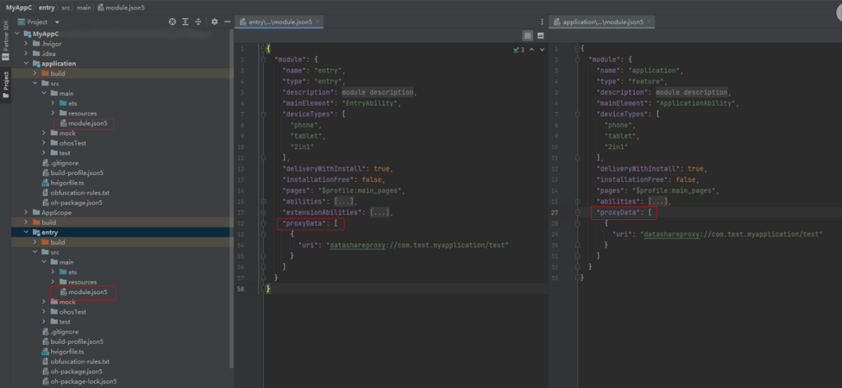 proxyData标识模块提供的数据代理列表,只允许entry和feature配置,不同的proxyData中配置的URI不可重复。遇到此问题,检查模块间是否配置了相同uri的proxyData。