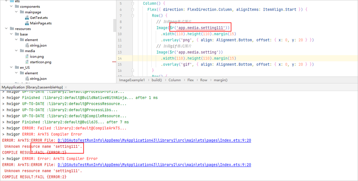 引用的资源不存在时,编译报错指向的文件路径是build目录。