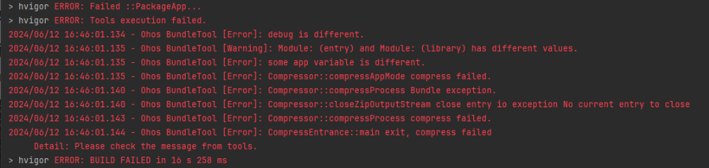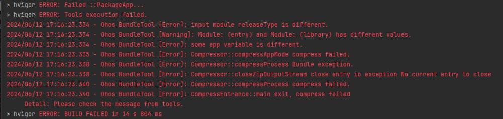 打包APP时,提示“input module releaseType is different”。