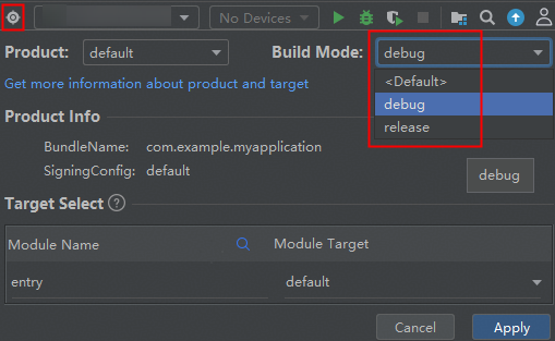 2.编译工具根据设置的Build Mode选项生成debug标识,如图所示,可以通过此处进行设置。