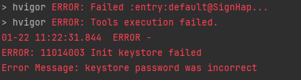 hap-sign-tool: error: ACCESS_ERROR, code: 109. Details: Init keystore failed: parseAlgParameters failed: ObjectIdentifier() -- data isn't an object ID (tag = 48) Detail: Please check the message from tools