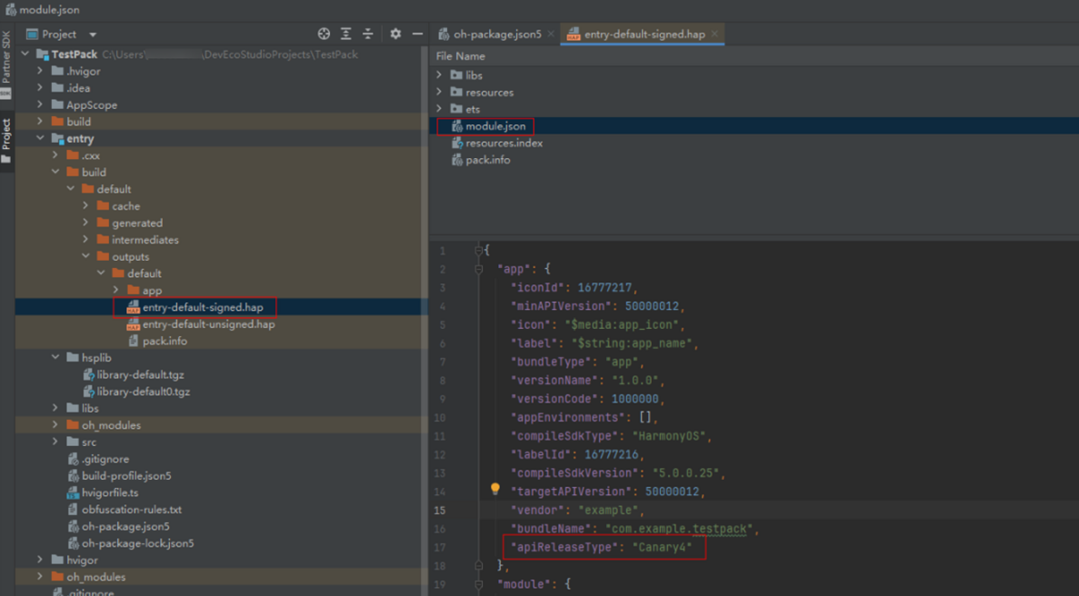 该apiReleaseType字段由编译构建工具自动生成,保存在HAP/HSP包的module.json文件中。如下图所示,首先确认各模块间该字段是否一致,如果存在不一致的情况,需要将应用的各个模块,使用相同版本的SDK重新打包,然后打包APP。