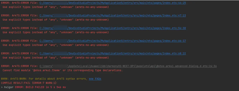 如何解决编译报错"arkts-no-any-unknown" 和 "Cannot find module 'xx' or its corresponding type declarations"的问题