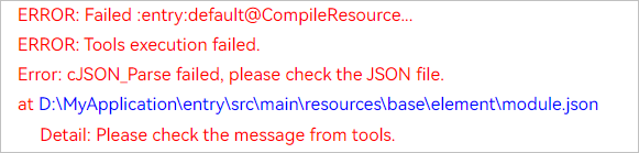 编译报错“Error: cJSON_Parse failed, please check the JSON file”。
