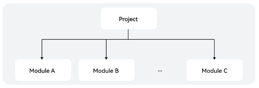 Hvigor将工程解析为一个树形结构,项目为树的根节点,项目中的每个模块为树的叶子节点,树最多为两层,模块中不能包含其他模块,在Hvigor的定义中统称项目或模块为一个node(节点)。
