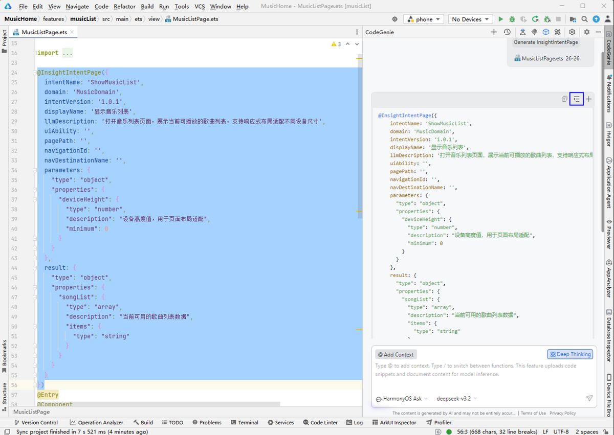 - 生成意图装饰器时使用HarmonyOS Ask智能体。