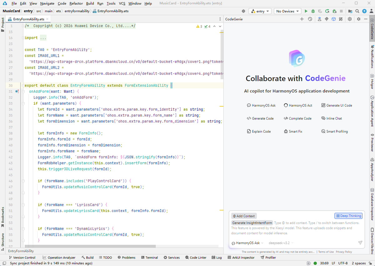 - @InsightIntentForm装饰器:在继承FormExtensionAbility的class头部或内部唤起意图装饰器,在class上方插入生成的代码。