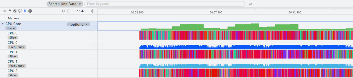 - Usage and Frequency:每个子泳道包含CPU核心使用率和频率两部分。