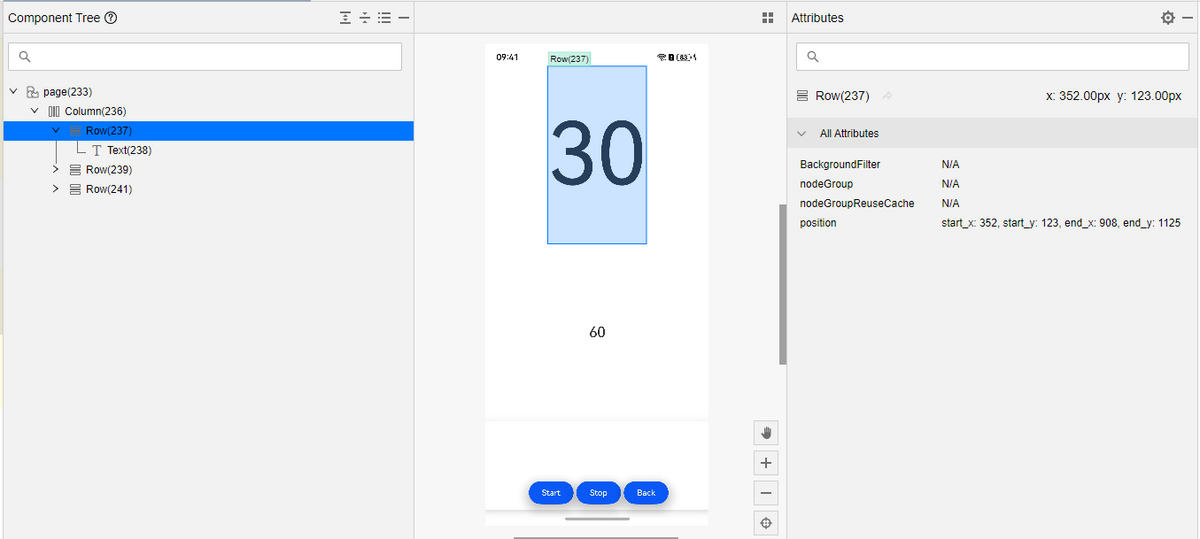 在ArkUI Inspector中可查看组件树和组件属性信息,当前支持BackgroundFilter、nodeGroup、nodeGroupReuseCache组件。