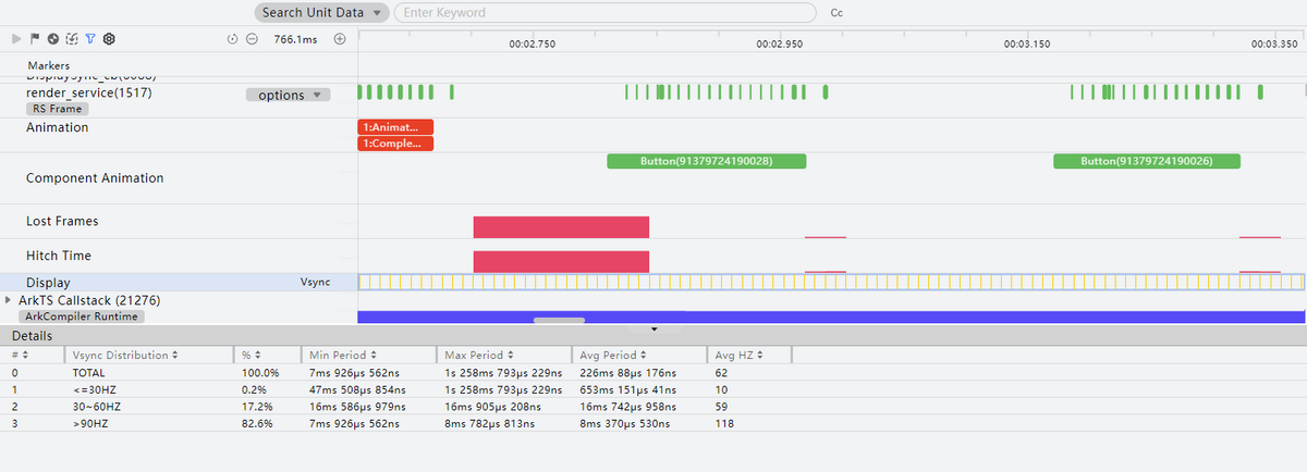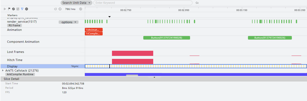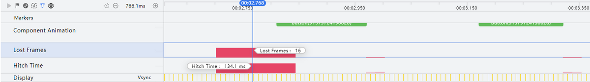 同时如果组件有可能的掉帧情况,DisplaySync_cb泳道显示对应的掉帧情况并标红展示。