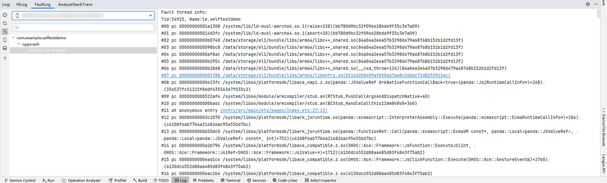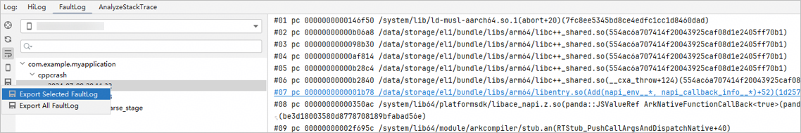 从DevEco Studio 6.0.0 Beta1版本开始,支持对Cpp Crash类型的FaultLog,进行结构化展示和日志过滤。