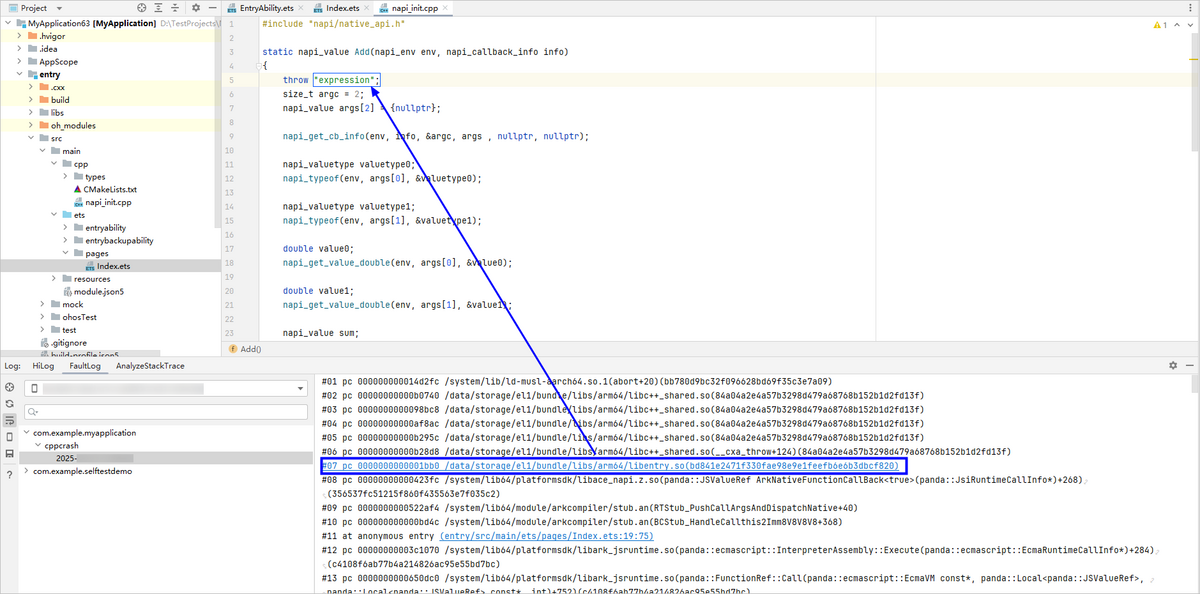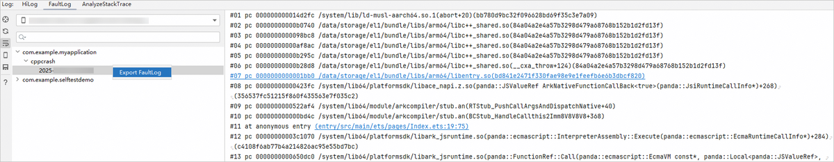 当应用运行发生错误导致应用进程终止时,应用将会抛出错误日志以通知应用崩溃的原因,开发者可通过查看错误日志分析应用崩溃的原因及引起崩溃的代码位置。