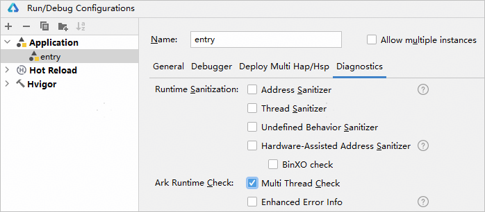点击Run > Edit Configurations > Diagnostics,勾选Multi Thread Check。