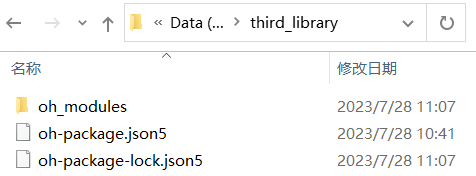 方式二:在可访问网络的电脑上创建一个空文件夹(如命名为third_library),在文件夹中创建一个oh-package.json5文件,设置三方包依赖,配置示例如下: