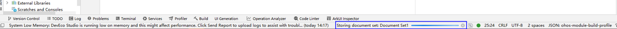 点击“OK”,完成本地知识库配置和同步,在DevEco Studio页面下方Storing document set可查看同步进度。