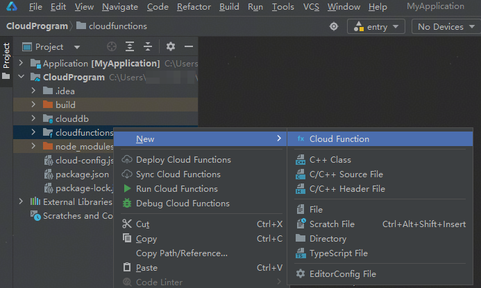 - 函数入口文件“myCloudFunction.ts”