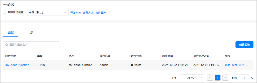 查看到“my-cloud-function”函数已成功部署至AGC云端,函数名称与本地工程的函数目录名相同。