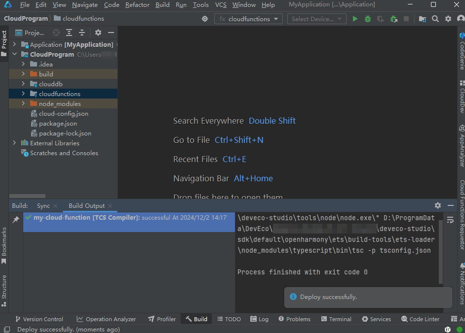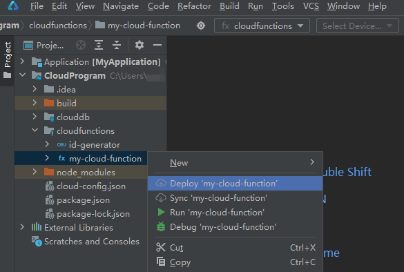 右击“my-cloud-function”函数目录,选择“Deploy 'my-cloud-function'”。