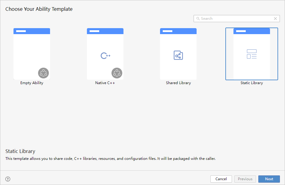在Choose Your Ability Template界面中,选择Static Library,并单击Next。