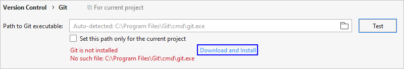 在DevEco Studio的欢迎页,进入Customize > All Settings... > Version Control > Git界面,单击Test按钮检测是否安装Git工具。