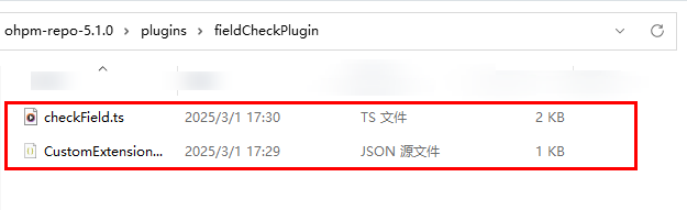 将文件tsconfig.json文件移动到ohpm-repo解压根目录内;建议将文件checkField.ts和CustomExtensionValidationConfig.json文件移动到ohpm-repo解压根目录的plugins/fieldCheckPlugin文件夹内。
