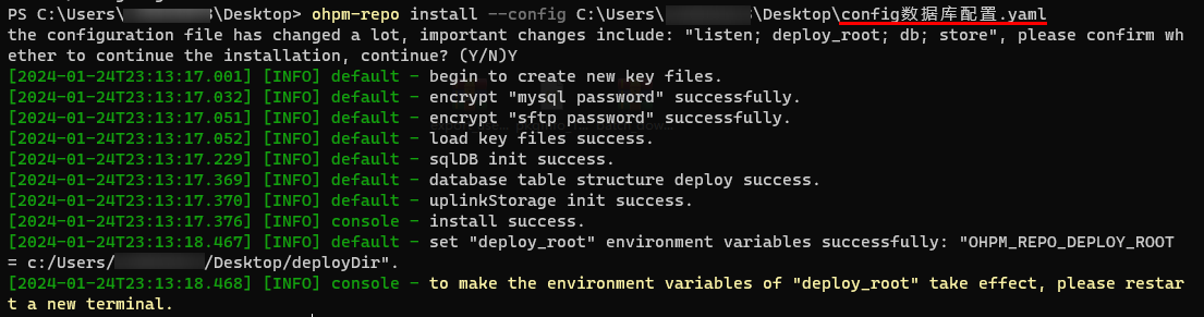 根据提示信息刷新环境变量,然后重新启动ohpm-repo。