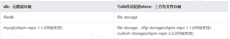 - 元数据:ohpm-repo运行过程中生成的用户数据和上传包后包的描述数据,在配置文件中,通过在配置文件中db选项配置存储信息。