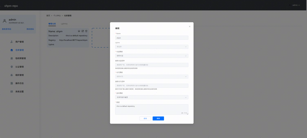 ohpm-repo从5.3.0开始支持多仓配置,并且支持对每个仓库进行权限编辑。