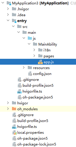 src > main > js > MainAbility > i18n:用于配置不同语言场景资源内容,比如应用文本词条、图片路径等资源。