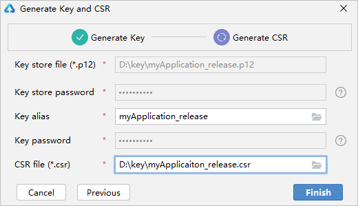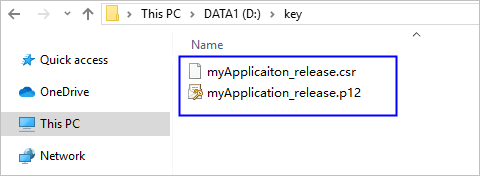HarmonyOS应用/元服务通过数字证书(.cer文件)和Profile文件(.p7b文件)来保证应用/元服务的完整性。在申请数字证书和Profile文件前,需要提前生成密钥(存储在格式为.p12的密钥库文件中)和证书请求文件(.csr文件)。