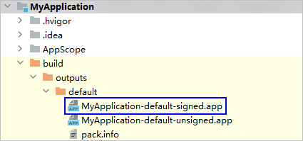 编译构建完成后,可以在工程目录build > outputs > default下,获取带签名的应用包。